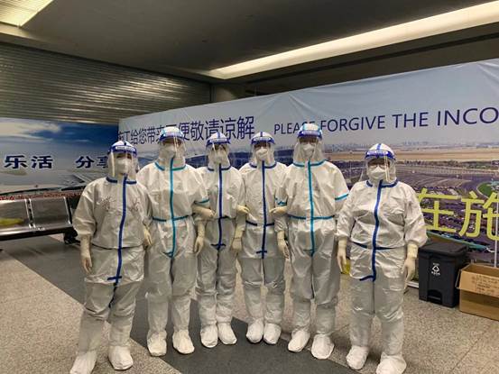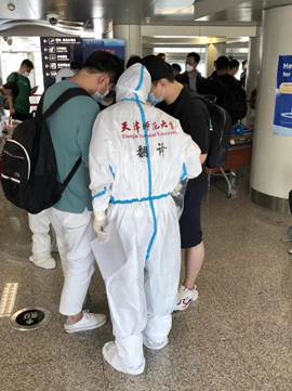 beat365亚洲体育师生抗疫翻译志愿者天津机场工作照