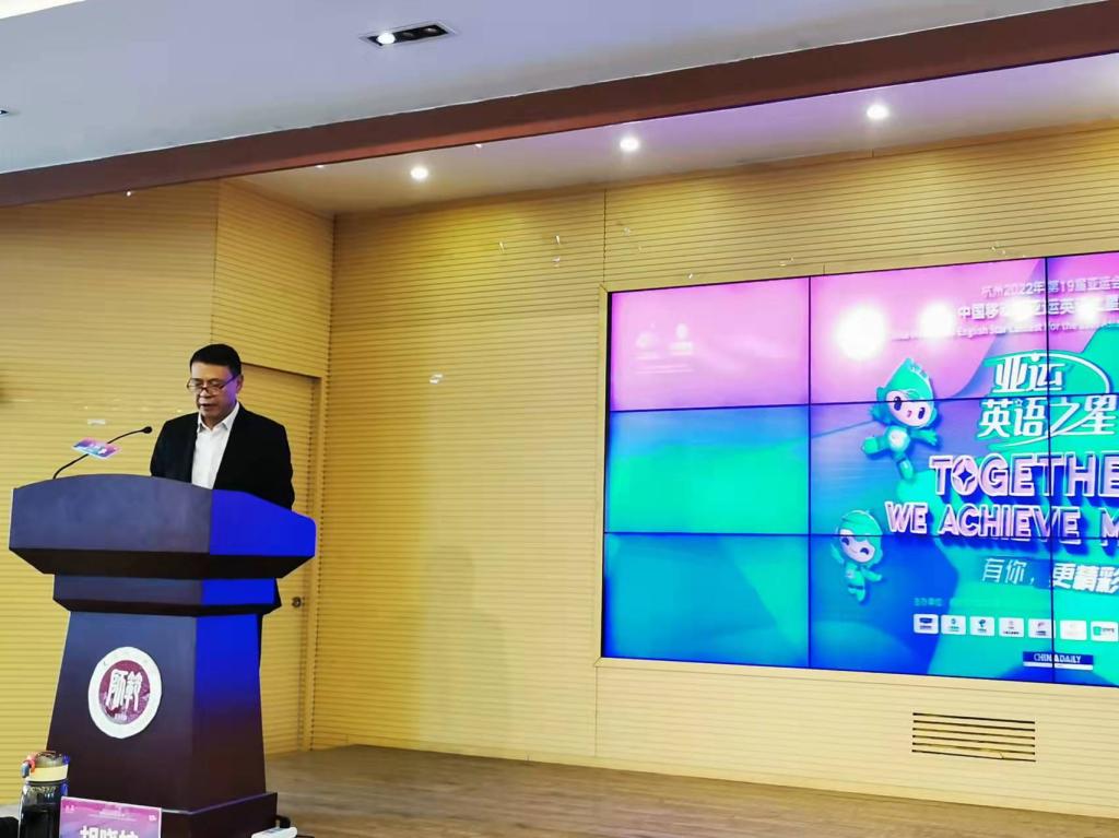 梁福成副董事长在致辞中指出,2022年我们即将拥抱冬奥会和亚运会两大赛事,此时的中国大地承载了更多的激情和梦想,国际话语权和影响力逐渐提升,同时也面临着新的形势和挑战。体育365官网积极参与国家重大发展战略,培养了一批又一批外语专业人才,成为了对外讲好中国故事的宣传骨干和文化使者等,体育365官网有信心、有能力为国家“高水平对外开放,开拓合作共赢新局面”做出更多的贡献。他表示,体育365官网志愿者作为最亮丽的“天师大名片”,与各大国际体育赛事渊源颇深,相信天师大学子会以此次“亚运英语之星”选拔为契机,发挥语言优势,赛出水平,赛出风采,弘扬“奉献、友爱、互助、进步”的志愿精神,以饱满的状态和激情参与到杭州亚运会中,为办好这场盛事贡献天师大力量。最后,他希望同学们要勤于学习,提升修养,不辜负党和人民的期望,努力成为可堪大任,能当重任的栋梁之材,争做2022年第19届亚运会的优秀志愿者。