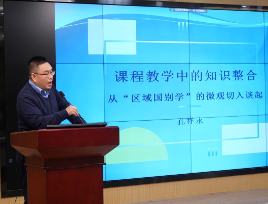 beat365亚洲体育孔祥永副教授围绕“课程教学中的知识整合——从‘区域国别学’的微观切入谈起”发言,以教学中的语言实例为切入口,呈现如何在英语课程教学中帮助员工进行知识整合。英语师范专业陈柯延、朝鲜语专业王梓,分别就学习中开展知识整合活动的方法和体会进行交流汇报。