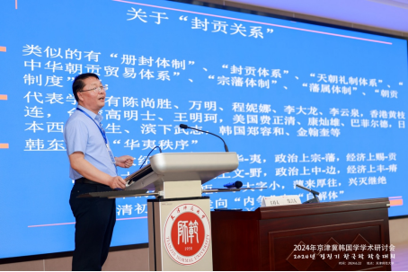 本次研讨会聘请了延边大学金哲俊教授、华中师范大学池水涌教授和体育365官网王臻教授分别做了语言、文学、文化领域的主旨报告。这三位专家分别以题为“东亚汉籍文献整理与研究”、“AI时代韩国学跨学科教学与研究”,以及“朝鲜王朝与明清封贡关系变迁中角色认同的转变及重建”等议题发表了精彩演讲,为参会人员呈现了三场高端学术盛宴。
