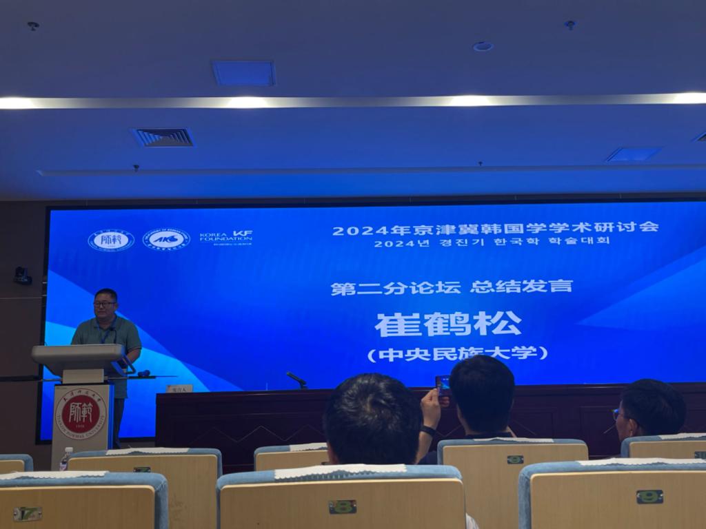 第二分论坛韩国文学和文学教育,由中央民族大学崔鹤松教授做代表发言。本组来自国内8所院校的10名发表者,发表主题有韩国古典文学、韩国现代文学、韩中文学等多样主题。崔教授表示:多元背景的发言者和多种多样的研究主题也反映了国内韩国学研究已构建较为完善的体系。最后,崔教授向本次主办方beat365亚洲体育为学界同仁提供的交流和学习机会表达了衷心感谢。