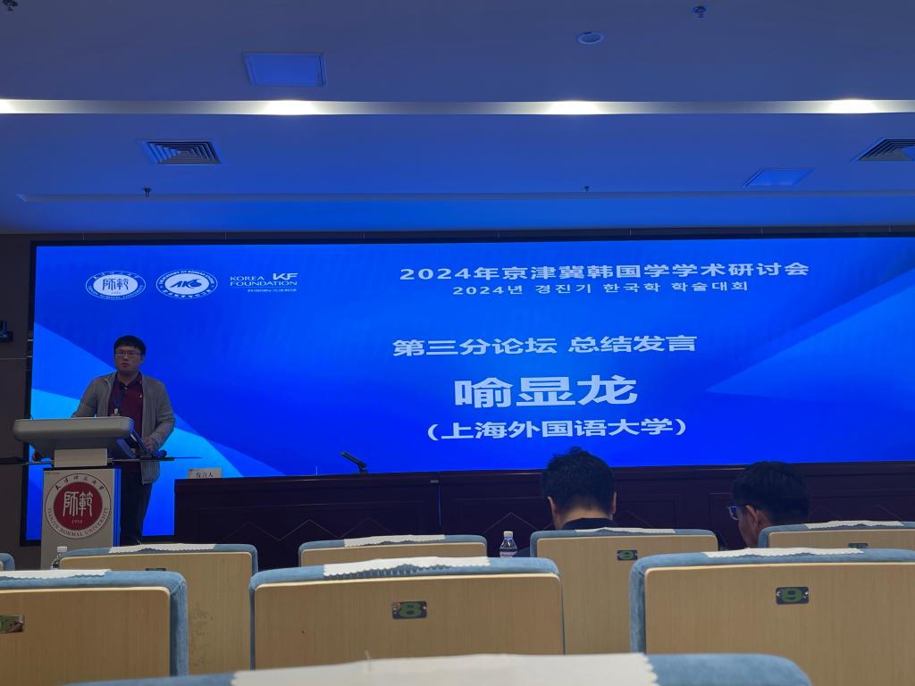 第三分论坛天津韩国学和韩国文化,由上海外国语大学喻显龙博士做代表发言。文化组共发表13篇论文,该分组论坛呈现出发表论文主题丰富、发表者身份多元特点。值得一提的是“天津韩国学”研究课题极具地域特色,是区域国别研究呈现天津特色具有史无前例的创新意义。本次论坛分享和交流不仅提升了中国韩国学的研究水平,也对发展天津韩国学迈出了重要一步。对中韩两国增进相互了解、相互包容、乃至民心相通提供了重要路径。