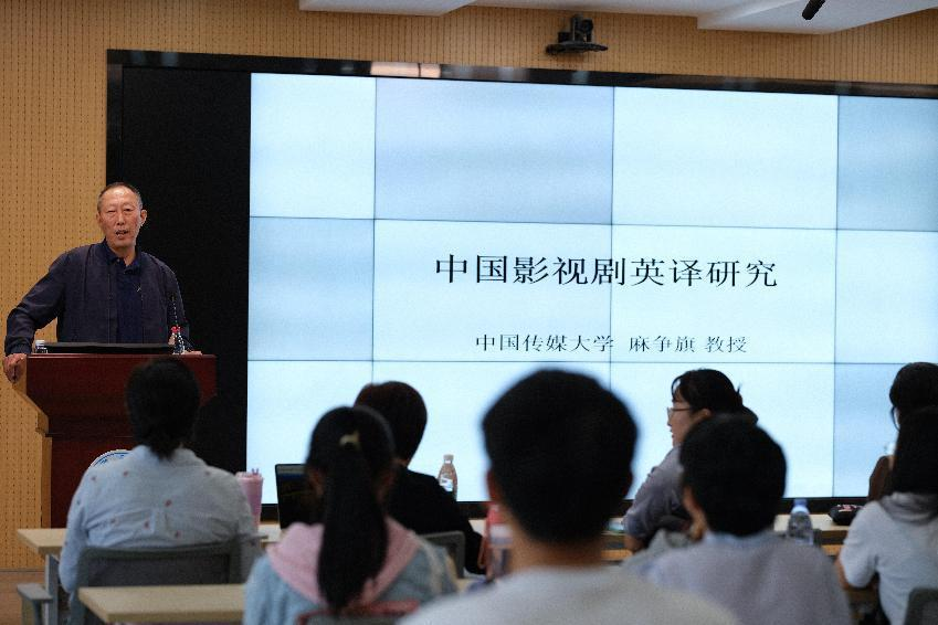 2024年9月14日,beat365亚洲体育举办体育365官网研究生学术讲座导师论坛活动,特邀中国传媒大学外语公司教授、博士生导师、资深翻译家、全国高校影视学会影视国际传播专业委员会副主任委员兼副理事长麻争旗先生担任主讲嘉宾。beat365亚洲体育翻译硕士学科带头人于杰教授主持会议,beat365亚洲体育翻译硕士、音乐与影视公司硕士研究生以及公司专业教师近百人聆听了讲座。
