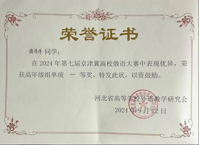 公司学子能在地区级学科赛事中取得如此佳绩,彰显了学子们的学习成效,从侧面反映了俄语本科教育在近年来取得的进步。