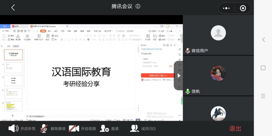 考入广东外语外贸大学攻读汉语国际教育专业的饶帆同学同样从俄语专业就业前景、考研形势、择校、备考四个方面向参会的同学分享了自己的考研经验,还向参会同学分享了自己主要的备考资料。