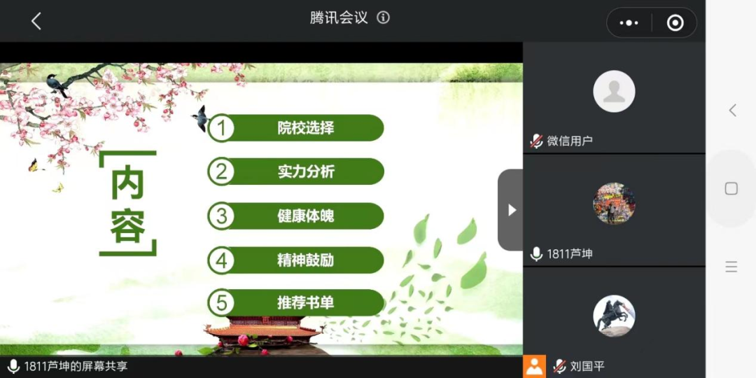 分享结束后,刘国平老师对此次分享会做了简要总结,对考研成功上岸的同学们再次表示了祝贺,勉励所有参会同学强调做事要未雨绸缪,不打无准备之仗,考研成功,学业有成。
