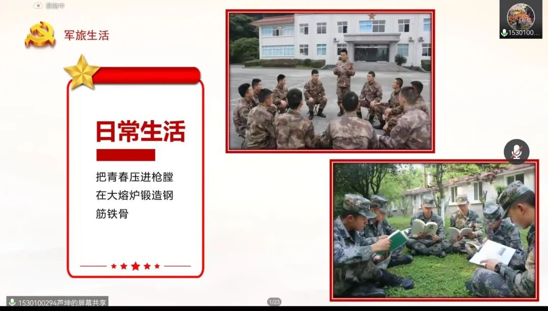 讲座伊始,芦坤以“参军光荣,不忘初心,实现心中的报国梦”为主题,详细介绍了国家对老员工应征入伍的政策扶持,并呼吁更多学子投身到军队中,到党和人民最需要的地方去,铸一身军魂,绽放青春之花。