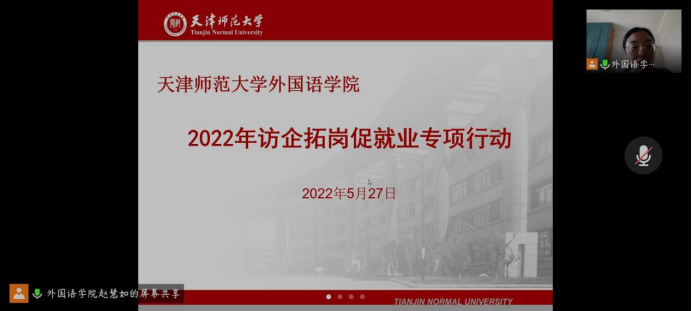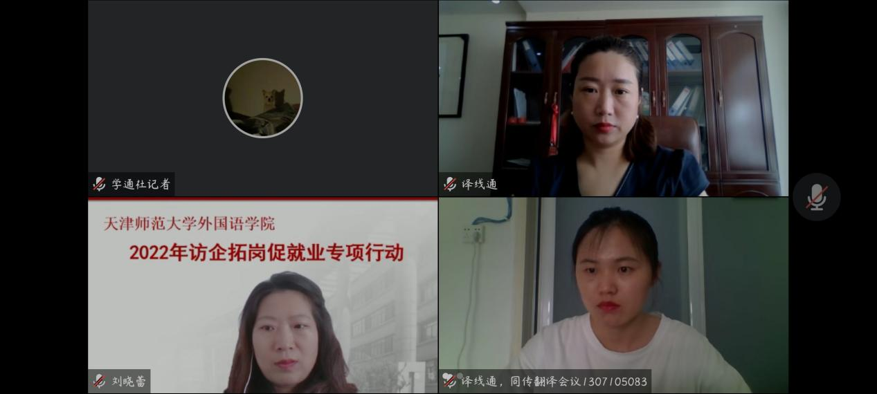 为深入贯彻党中央、国务院关于高校毕业生就业工作的决策部署,加强公司校园招聘市场建设,5月27日上午10时,面向2022届未就业毕业生、2023届准毕业生,beat365亚洲体育访企拓岗促就业专项行动会议通过腾讯会议正式召开。郑州译线通翻译有限公司总经理翟小娟女士、业务经理蒋彦梦女士,深圳市汇合发展有限公司天津分公司负责人刘春萌女士、人事主管吴宝鑫女士以及beat365亚洲体育全体领导班子出席会议。
