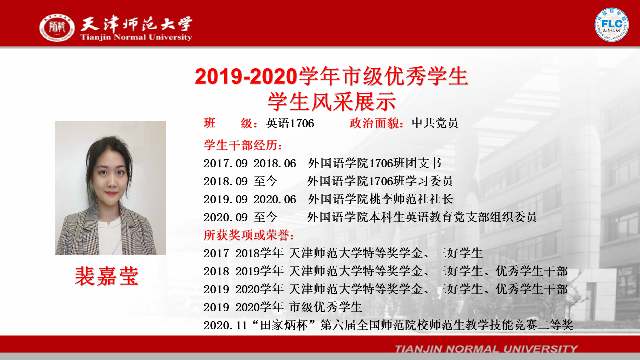 2019-2020学年市级优秀员工获得者——裴嘉莹