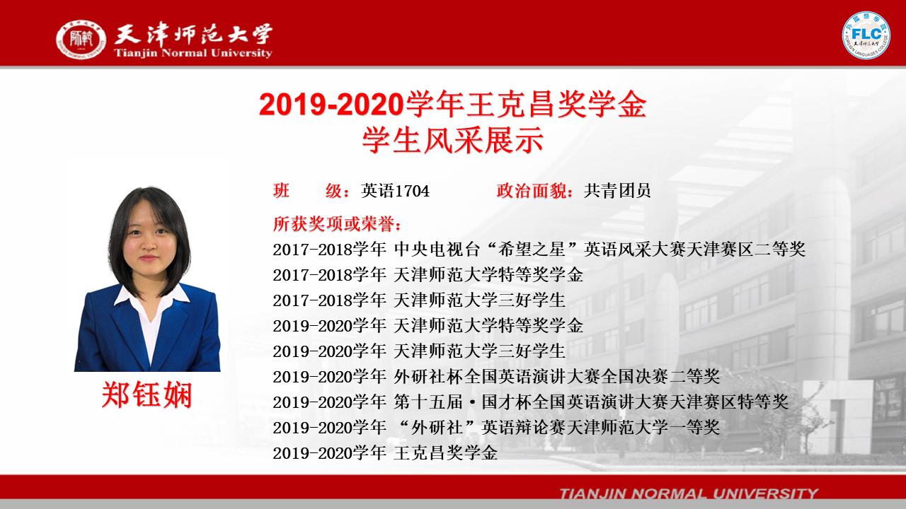 2019-2020学年王克昌奖学金获得者——郑钰娴