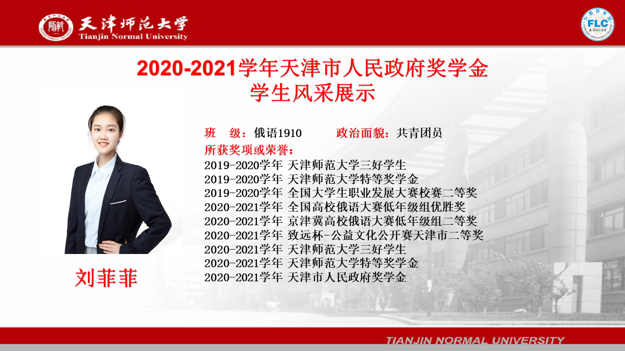 2020-2021学年天津市人民政府奖学金获得者——刘菲菲