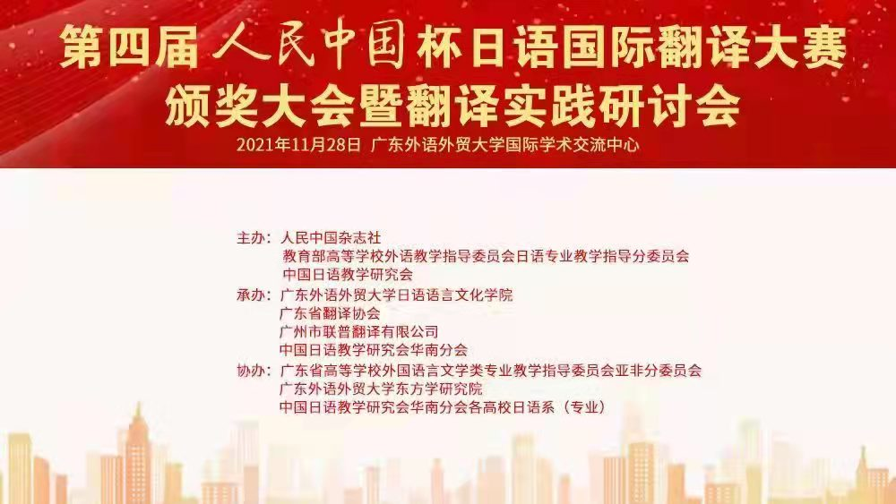 据悉,“人民中国杯”由中国外文局下属的“人民中国”杂志社和教育部外指委日语分委会联合主办,中国日语教学研究会协办,广东省翻译协会和广州联普翻译有限公司承办,是一项级别最高、规模最为宏大、社会影响最为深远的日语翻译赛事。大赛设笔译和口译两个方向,各方向分设高职专科组、本科组、研究生组、社会组四组。自2021年1月15日开赛以来,吸引了来自中国和日本600多所高校和企业近6000余名选手参与,受到了社会各界、尤其是各大高校及业界同行的广泛关注。
